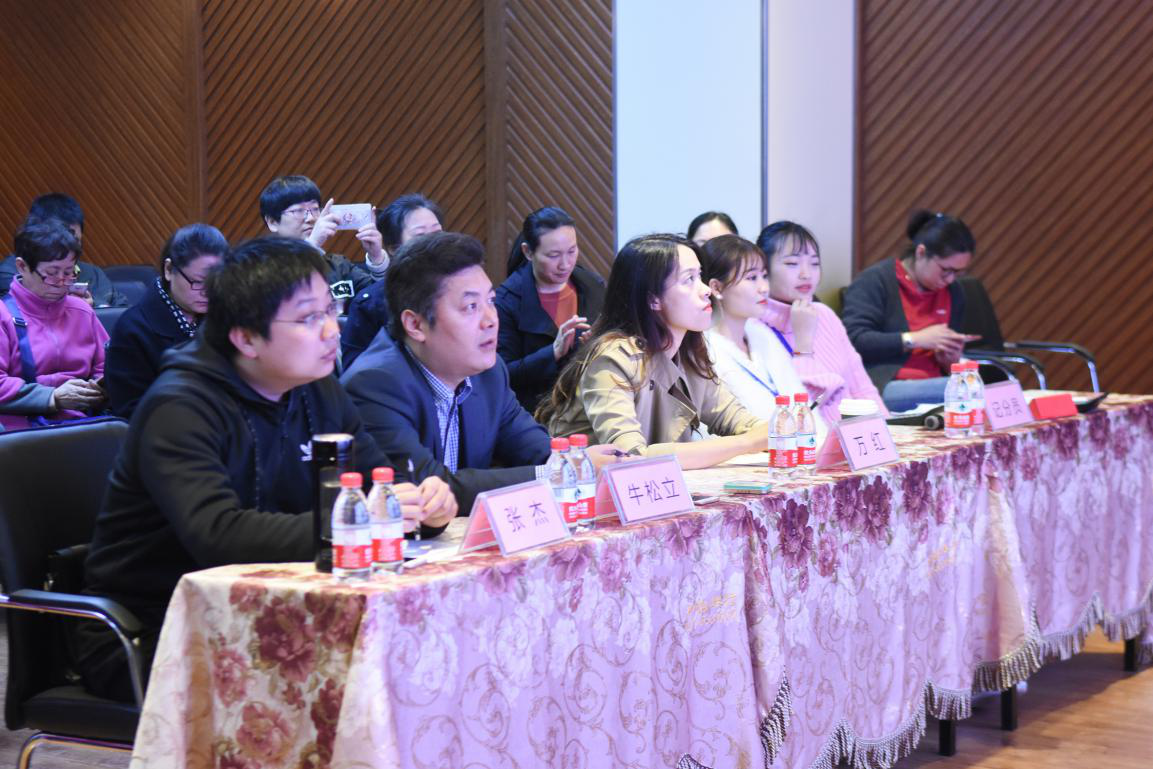 三位评委就座评委席等待选手上场,比赛开始前陈经理上台致辞�